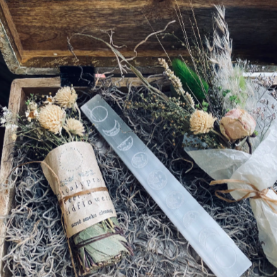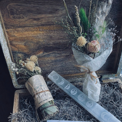 This ritual box is designed for moon rituals and can hold your essential tools, such as healing crystals, jewelry, tarot cards, journals, and incense.